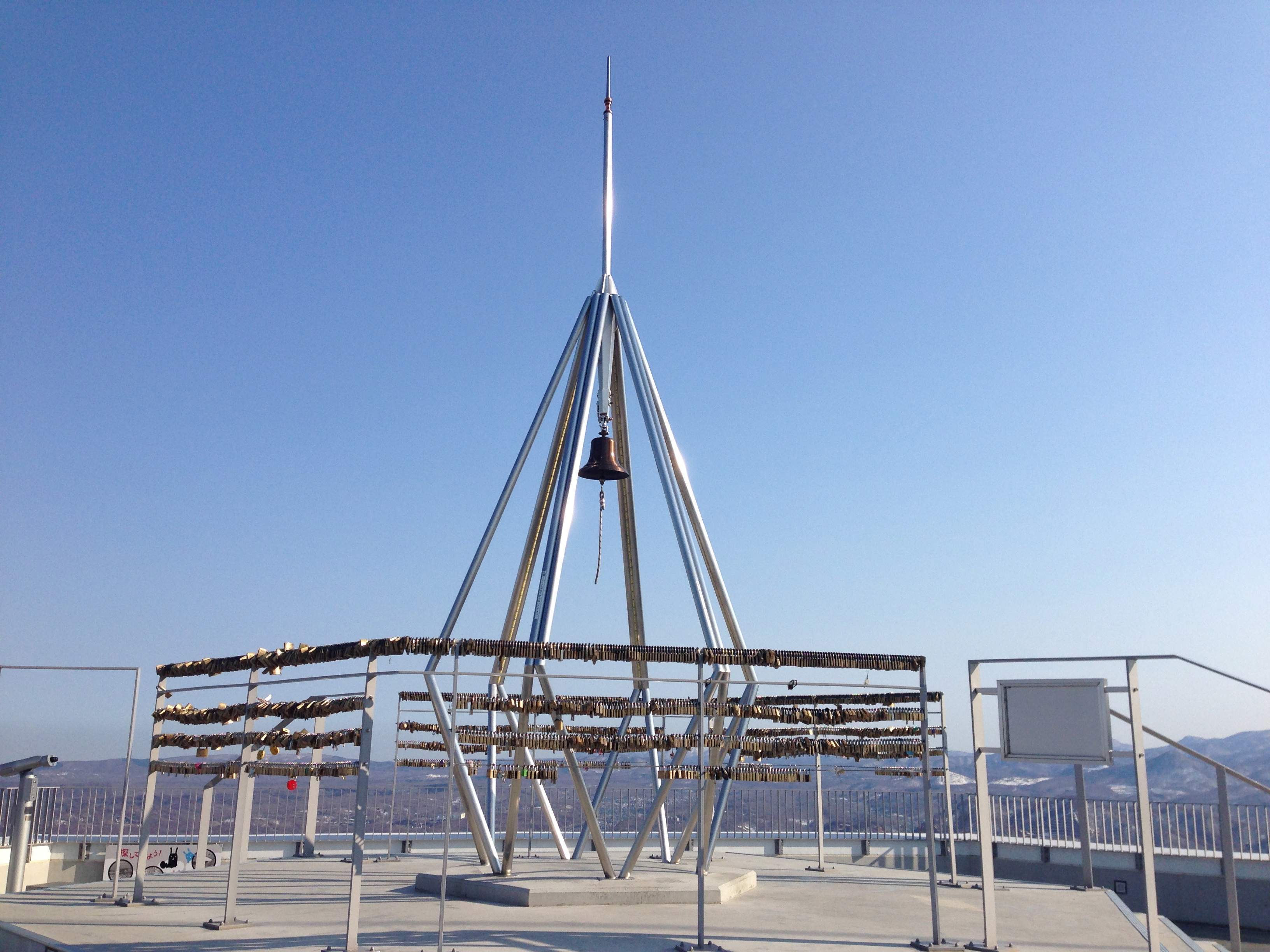山頂展望台には、幸せの鐘があって、撮影スポットになっている。